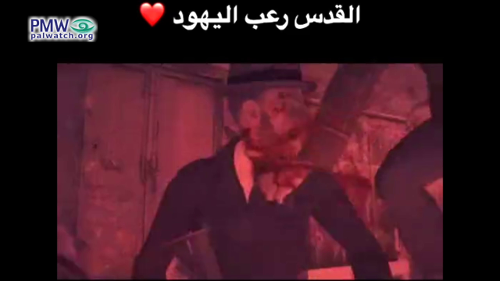 The video shows four lethal terror attacks that were committed against Israelis – a terrorist who rammed his car into Israelis at a Jerusalem light rail station, another who shot at Israeli police, and two stabbers. An eagle – possibly symbolizing the eagle in the emblem used by the Palestinian Authority and the PLO – flies above the carnage throughout the video, at one point moving in unison with 19-year-old Palestinian terrorist Muhannad Halabi as he stabs a religious Jew in the Old City of Jerusalem. The video carries the text “Jerusalem is the dread of the Jews," followed by a red heart.