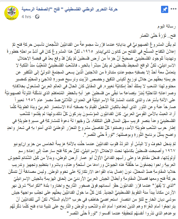 Posted text: "The daily message: Fatah, revolution until victory
