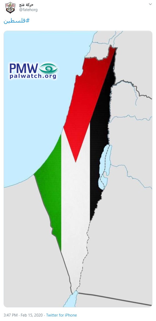 Fatah tweets map that erases Israel and replaces it with “Palestine”