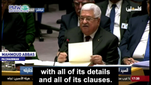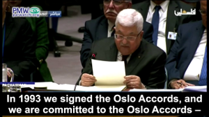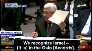Abbas: “In 1993 we signed the Oslo Accords, and we are committed to the Oslo Accords – with all of its details and all of its clauses. We have also recognized Israel and Israel has recognized us. We recognize Israel – in the Oslo [Accords].”