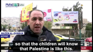 Activist Mazen Al-Dunbuk: “We want to instill this map in the minds of all of the children, the children of Palestine, the flowers of Palestine. Our next step is to distribute it in the schools in order to hang it in all the classrooms so that the children will know that Palestine is like this.”