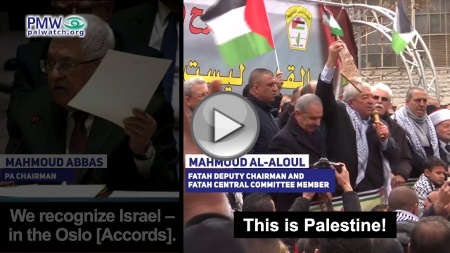Consistent with Palestinian Authority policy, there is one message for the Palestinian street and another for the world. Since US President Trump revealed his Middle East peace plan, Palestinian leaders have intensified their message to Palestinians that they will never accept a “Palestine” that does not replace all of the State of Israel. At the same time, PA and Fatah Chairman Mahmoud Abbas assured the UN Security council that the Palestinians “recognize Israel:”