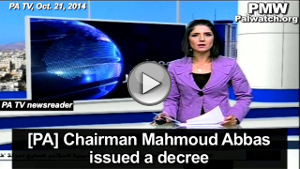 PA TV newsreader: "[PA] Chairman Mahmoud Abbas published a decision on an amendment to the Jordanian penal law and on its previous amendments in the northern districts (i.e., the West Bank). In the new amendment, he instituted life imprisonment with forced labor for the clandestine transfer, leasing or selling of lands to a hostile country or its citizens. The previous penalty for the clandestine transfer of land was temporary forced labor.”