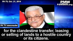 PA Chairman Abbas himself in 2014 issued a decision that gives “life imprisonment with forced labor for the clandestine transfer, leasing or selling of lands to a hostile country or its citizens”: