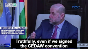 Supreme Shari’ah Judge and Chairman of the Supreme Council for Shari'ah Justice Mahmoud Al-Habbash: "President [Abbas'] ratification in 2009 (sic., 2014) of the CEDAW convention was a ratification conditioned on what is consistent with the Palestinian constitution, with the Basic Law… We have a Basic Law that says: 'Islamic law is the source of legislation' … Truthfully, even if we signed the Convention on the Elimination of Discrimination Against Women (CEDAW) convention we are not committed to it at all, except for what is consistent with Islamic law… We are committed to the international laws in what does not contradict our national heritage, religious heritage, and our faith. The president has said this, the [PA] government has said this, and we [the Supreme Council for Shari’ah Justice] have said this."