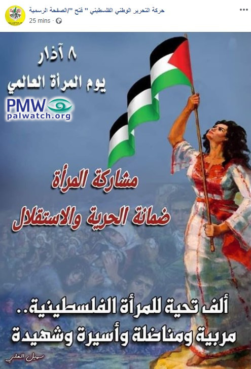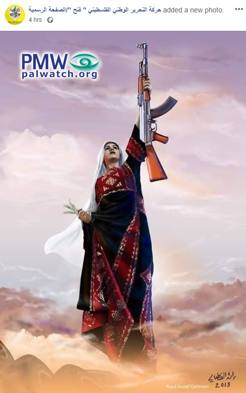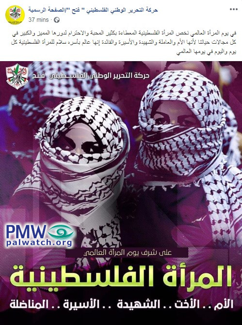 Celebrating International Women’s Day, Abbas’ Fatah Movement posted the image above of a Palestinian woman holding up a rifle. The image, as many others posted by Fatah before it and exposed by Palestinian Media Watch, promotes and endorses violence and terror.