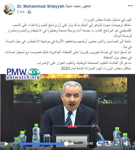 Video and text posted on the Facebook page of PA Prime Minister Muhammad Shtayyeh