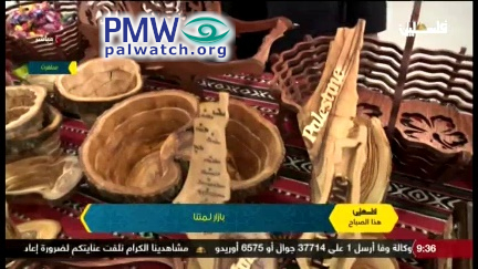Palestinian Authority TV displays wood carvings in the shape of the PA map of “Palestine” that presents all of Israel as “Palestine”