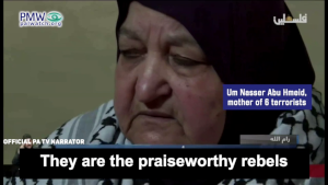 In addition, PA TV chose this day to honor terror mom Um Nasser Abu Hmeid, who is famous and admired for being the mother of 5 terrorist prisoners serving multiple life sentences for murder and one dead terrorist “Martyr.” [Official PA TV, Special Interview, March 8, 2020] Click here to view this video