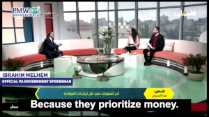 Official PA Government Spokesman Ibrahim Melhem: “Why is the number of infected [with Coronavirus] high among the Israelis? Because they prioritize money. They don’t want to stop the wheels of production, and so they are sacrificing the infected among their people in order to make more money. The heads of the cartels and the wealthy, and with them [Israeli Prime Minister] Netanyahu, do not want to paralyze the financial life because they are doing the math: Money.”