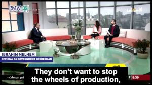 PA Government Spokesman Ibrahim Melhem embellished the libel with classic Antisemitism, stating that Israel prefers profits to saving Israeli lives from Coronavirus, and what matters to Israel and Israeli PM Netanyahu is to keep up the production and financial life because it is all about money: