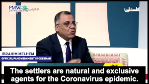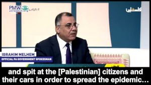 Official PA Government Spokesman Ibrahim Melhem: “The Israeli settlement racism is expressed in the behavior of the settlers, who contaminate the ATM machines and spit at the [Palestinian] citizens and their cars in order to spread the epidemic… The settlers are natural and exclusive agents for the Coronavirus epidemic. They spread it through their touch and their racist and barbaric behavior that they are exhibiting towards the [Palestinian] citizens.”