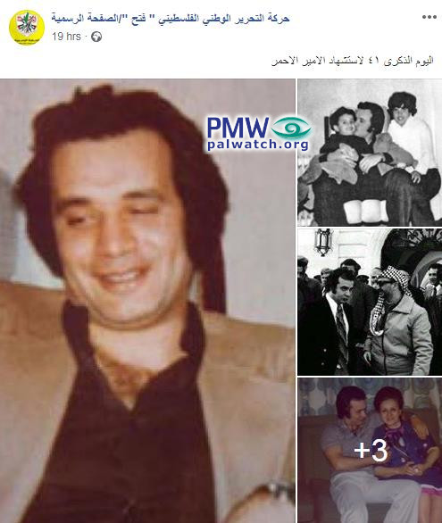 Posted text: “Today is the 41st anniversary of the death of the Red Prince as a Martyr (i.e., terrorist and Black September commander Ali Hassan Salameh, responsible for numerous terror attacks)”