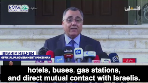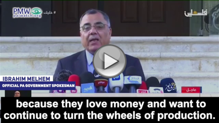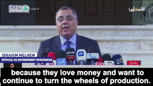 Even now, during the global fight against the Coronavirus epidemic, the PA disseminates antisemitic stereotypes. The PA Government spokesman, Ibrahim Melhem, said that Israelis “love money” and therefore Israel prefers to keep the economy running instead of dealing with the virus: