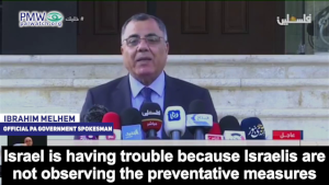 Official PA Government Spokesman Ibrahim Melhem: “The settlements are incubators for the [Coronavirus] epidemic, and also the workplaces in Israel, hotels, buses, gas stations, and direct mutual contact with Israelis. Israel is having trouble because Israelis are not observing the preventative measures because they love money and want to continue to turn the wheels of production.”