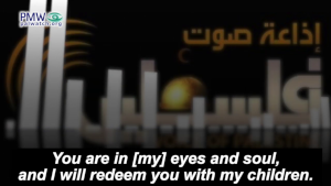 And I will redeem you with my children”[This song, "I Love You, Palestine, From the Bottom of My Heart" by Palestinian singer Ammar Hassan, was broadcast by the official PA radio station The Voice of Palestine on the following dates: Jan. 2, 5, 9, 10, 12, 22, 23, Feb. 12, 20, 22, March 2, 20, April 10, 14, May 1, 14, 17, June 4, 19, Aug. 15, Dec. 14, 28 2019; Jan. 8, 15, 17, 18, 29, Feb. 5, 12, 2020]