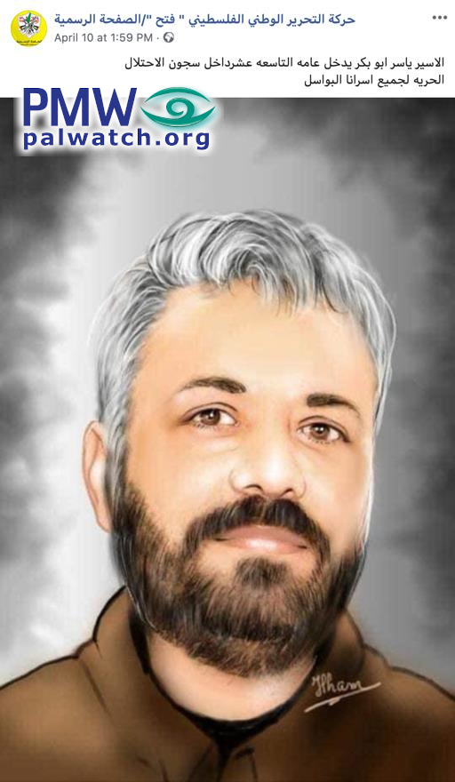 Posted text: “Prisoner Yasser Abu Bakr has begun his 19th year in the occupation’s prisons