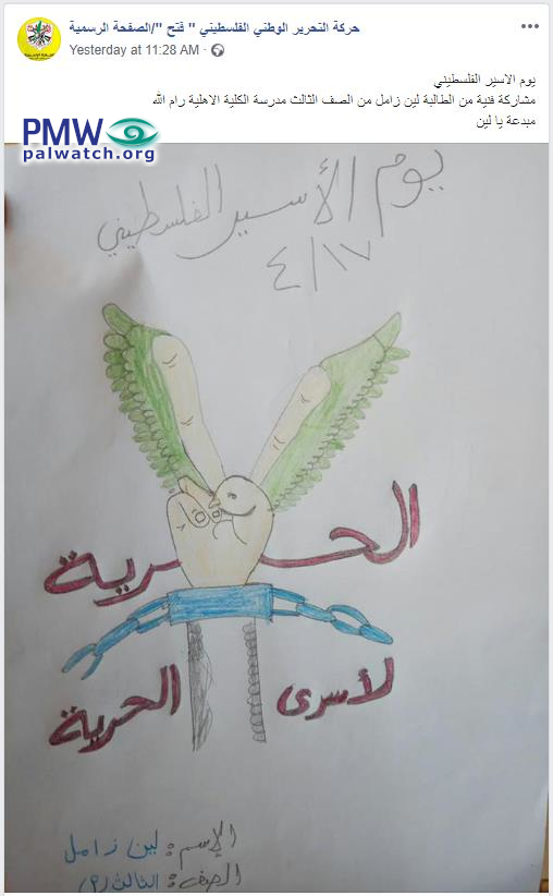 Fatah posts girl's drawing calling for "Freedom for the prisoners of freedom"