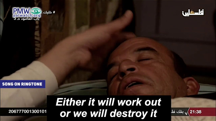 During Islam's current month of Ramadan, official PA TV is treating Palestinians to a variety of drama series. One of them, The Damascus Gate, included a scene in which the main character’s phone rings while he is sleeping and as he gropes for the phone, the song Strike Tel Aviv plays as its ringtone. The song urges Palestinians to carry out terror and “terrify the Zionist!”: