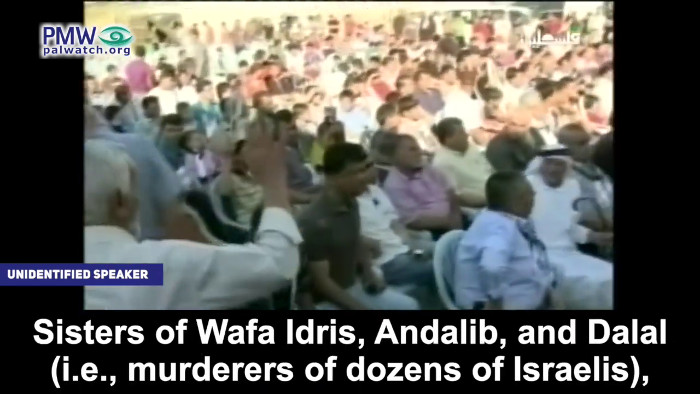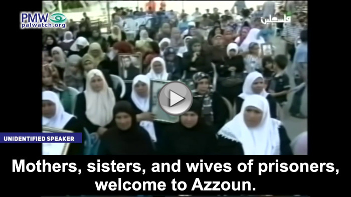 Unidentified speaker: “Mothers, sisters, and wives of prisoners, welcome to Azzoun. Sisters of Wafa Idris, Andalib, and Dalal (i.e., female terrorist murderers of dozens of Israelis), welcome, you are the honored ones and the fighters...”