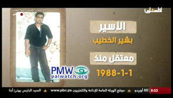 Text: “Prisoner Bashir Al-Khatib – prisoner since Jan. 1, 1988”