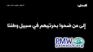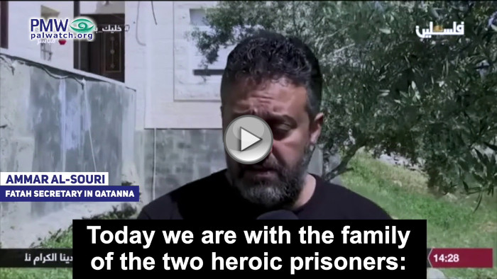 Fatah glorifies and promotes terrorist murderers just like the PA. Thus one Fatah official referred to two murderers who killed 3 Israelis as “heroic prisoners.” The two murderers were also included in PA TV’s fillers. In the same broadcast, the murderers’ father encouraged everyone to “sacrifice for Palestine” as they did: