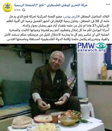 Moreover, Fatah sympathized with “heroic” murderer Karim Younes and lamented the fact that the killer has to eat his fast breaking meals during the Ramadan alone, without his mother. Fatah also expressed “appreciation and admiration” for all the imprisoned terrorists and murderers:
