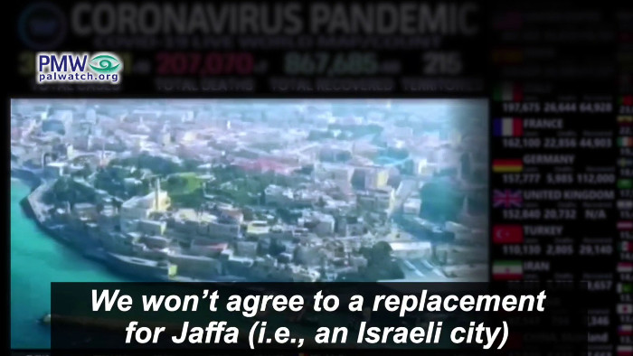 Onward ship, bring us to Haifa and Acre (i.e., Israeli cities)”[Official PA TV LIVE, April 27, May 3, 2020]