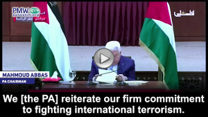 Abbas: “We [the PA] reiterate our firm commitment to fighting international terrorism. We are against international terrorism. We are against international terrorism regardless of its shape or source.”