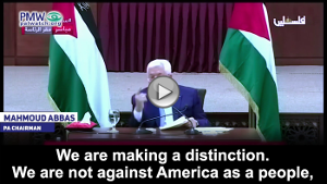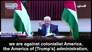 Abbas: “We are making a distinction. We are not against America as a people, we are against colonialist America, the America of [Trump’s] administration, settlement America, and the America that is hostile to the Palestinian people and the peoples of the world. But we are not against the Americans or those who hold American citizenship. We are against those who stand against us.”