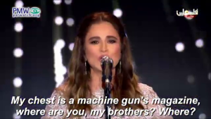 This version of the song was performed by Lebanese singer Julia Boutros at a concert in Dbayeh in Lebanon in 2016. PMW recently documented that this same song calling for terror was played at a Fatah rally protesting US President Trump’s Middle East peace deal.
