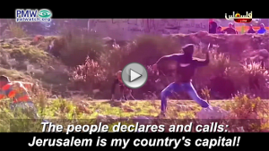 This song, “Slap of the Century,” was produced by official PA TV Live in protest against US President Trump’s Middle East peace plan “the Deal of the Century,” which among other things would leave Jerusalem under Israeli sovereignty. The PA transmitted the same message in a similar song exposed recently by PMW in which Palestinians were urged to die for Al-Aqsa, and “redeem its soil with their blood.”