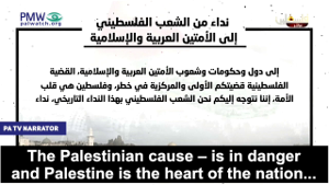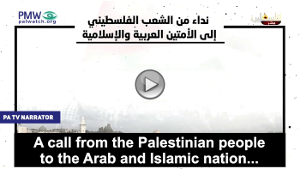 PA TV narrator: “A call from the Palestinian people to the Arab and Islamic nation...