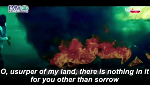 PA TV Live is one of the two official TV stations run by the PA. During the last few weeks, the PA has used this station to promote violence and terror via music videos, as Palestinian Media Watch has documented in several reports. And the PA’s inventory of terror promotion seems inexhaustible. The following is yet another example of PA threatening Israel:
