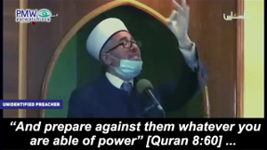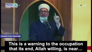 In a sermon broadcast by the PA, an unidentified preacher called on Palestinians to wage war against Israel, warning Israel that “its end, Allah willing, is near”:
