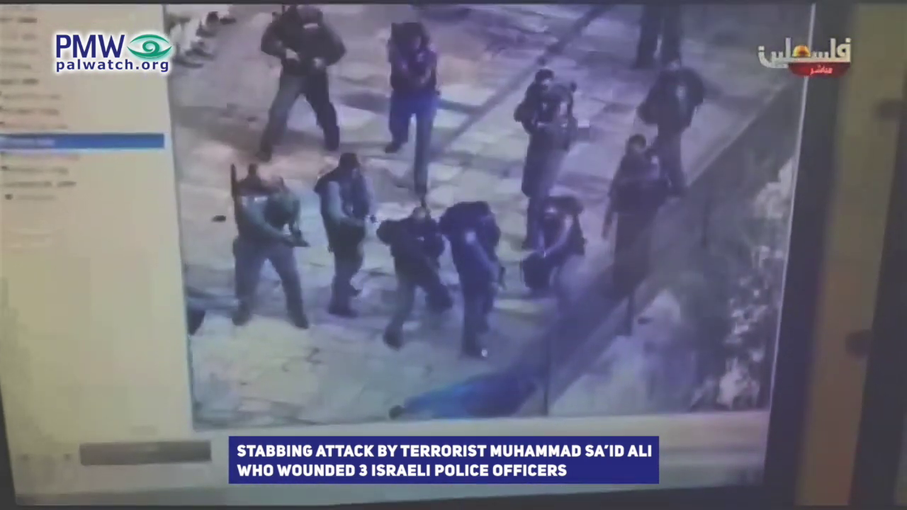 Your army needs to disappear from Palestine..."Visuals of stabbing attack by terrorist Muhammad Sa’id Ali, who wounded 3 Israeli police officers; and clashes between Palestinian rioters and Israeli soldiers
