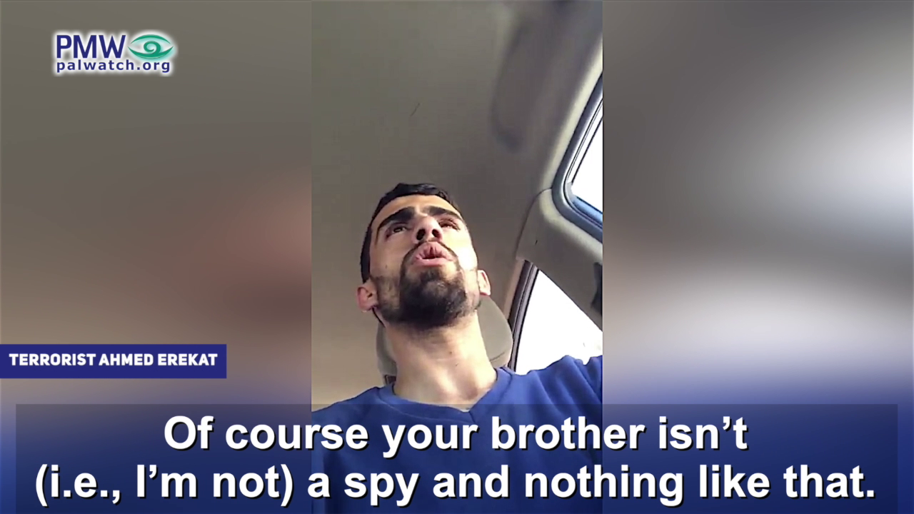 Terrorist Ahmed Erekat phone message: “Of course your brother isn’t (i.e., I’m not) a spy and nothing like that. I’ve never betrayed the homeland in my life... my brothers and sisters were not involved in this”