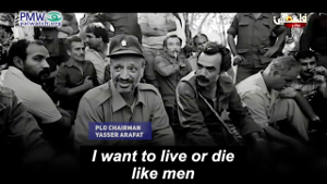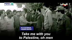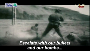 The song "Now I have a rifle" was originally performed by Egyptian singer Umm Kulthum. PMW has previously exposed that the song was part of the repertoire at an event at event supported by PA Ministry of Culture. In the current version, PA TV Live blended in images of arch-terrorist Abu Jihad, who organized attacks in which at least 125 were murdered, and PLO Chairman Yasser Arafat, who led two terror campaigns – intifadas – during which more than 1,300 Israelis were murdered.