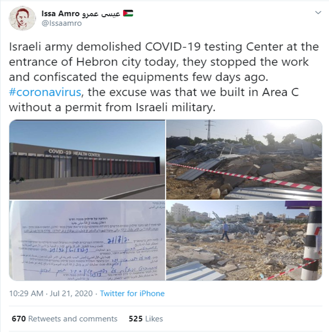 The birth and spread of a new anti-Israel libel: The claim that Israel destroyed a COVID-19 testing center in Hebron is false!