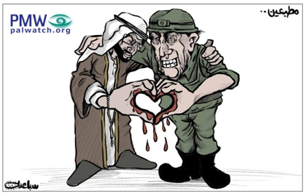Instead, the PA leadership characterizes the deal as a “knife in the back” as the cartoon above illustrates. Abbas’ deputy Chairman of the Fatah Movement Mahmoud Al-Aloul said this explicitly, also stating that the UAE peace agreement is “treason”: