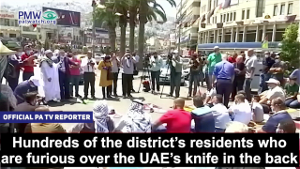 While protesters in the street burned pictures of Bin Zayed and called him a “collaborator,” PA TV confirmed that the UAE’s actions are “a knife in the back” and that the UAE has turned into a lackey of the US and Israel. PA TV further stressed that his was not a local fringe expression of anger, but rather the official Palestinian opinion.