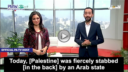 Official PA TV host: “Today, [Palestine] was fiercely stabbed [in the back] by an Arab state that was supposed to be with us in our suffering and to support us.