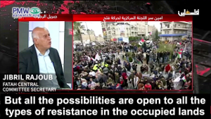 Using the Palestinian euphemism for violence and terror, Rajoub stated that “all the possibilities are open to all the types of resistance”: