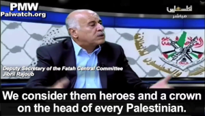 Rajoub’s advocacy for violence and praise for terror is not new. Palestinian Media Watch has documented his views in favor numerous times. During the wave of Palestinian terror attacks in 2015/16, Rajoub praised the terrorists – including murderers – as “heroes and a crown on the head of every Palestinian.”