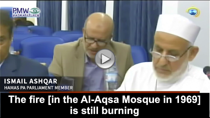 Hamas PA Parliament Member Ismail Ashqar: “The fire [in the Al-Aqsa Mosque in 1969] is still burning and still has not been extinguished since its occupation by the Zionist terror. Because the Muslims are distracted from it, and they are in a deep slumber … The arson in Jerusalem demands a greater arson that will burn its thieves, burn the attacking sons of Zion, burn the lowly Arabs and non-Arabs, burn those (i.e., the PA) who are carrying out security coordination [with Israel] and those dealing in [Jerusalem’s] sanctity, and burn whoever normalizes their relations (i.e., UAE) and flatters the occupation. Long live Jerusalem, free and proud! … ! Long live Palestine, free and eternal; and death to Israel, the occupation, and the Zionist terror!”