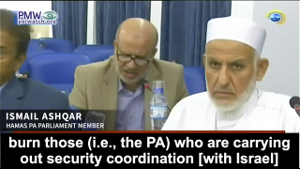During a session in the Hamas PA Parliament, MP Ismail Ashqar read a statement calling for “death to Israel.” On the backdrop of the commemoration of the arson at the Al-Aqsa Mosque in 1969, Ashqar called for “burning” the “sons of Zion” and anyone who “normalizes relations” with Israel in a clear reference to the UAE’s recent peace agreement with Israel. He also criticized the PA for its security coordination with Israel, wishing it would burn too: