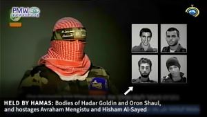 In another filler and song broadcast on the same day, Hamas glorified past terror attacks in which Israeli soldiers were murdered, and Israeli soldier Gilad Shalit was kidnapped. Hamas also boasted of its holding of two Israeli captives, Avraham Mengistu and Hisham Al-Sayed who both suffer from a mental health disorder, and its holding of the bodies of two dead soldiers, Hadar Goldin and Oron Shaul, who were killed during the 2014 Gaza War. Addressing imprisoned Palestinian terrorists, Hamas encouraged more terror and promised more kidnappings for trading more prisoners in exchange deals. The filler also glorified Ahlam Tamimi – the female terrorist who chose the Sbarro pizza shop in Jerusalem as target for a bombing in 2001 and led the suicide bomber there who murdered 15 and wounded over 100. Tamimi was released in 2011 as part of the Gilad Shalit exchange deal and Hamas is using her release to encourage imprisoned female terrorists and other potential terrorists, telling them that prison sentences should not deter them because they don’t last: