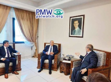 Earlier this year, Palestinian Media Watch also documented the PA’s support for the Syrian leader when a PLO delegation met with Syrian Deputy Minister of Foreign Affairs Faisal Mekdad in Damascus. Also then “the depth of the Palestinian-Syrian relations and the constant coordination” between them were emphasized, and the delegation then too stressed that “the American administration and the Israeli occupation want to harm Syria, its unity, its stability, and its progress.” [Official PA daily Al-Hayat Al-Jadida, Jan. 19, 2020]