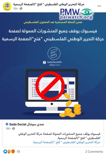 Facebook is stopping all the boosted posts of the official Fatah Facebook page”[Official Fatah Facebook page, Sept. 26, 2020]