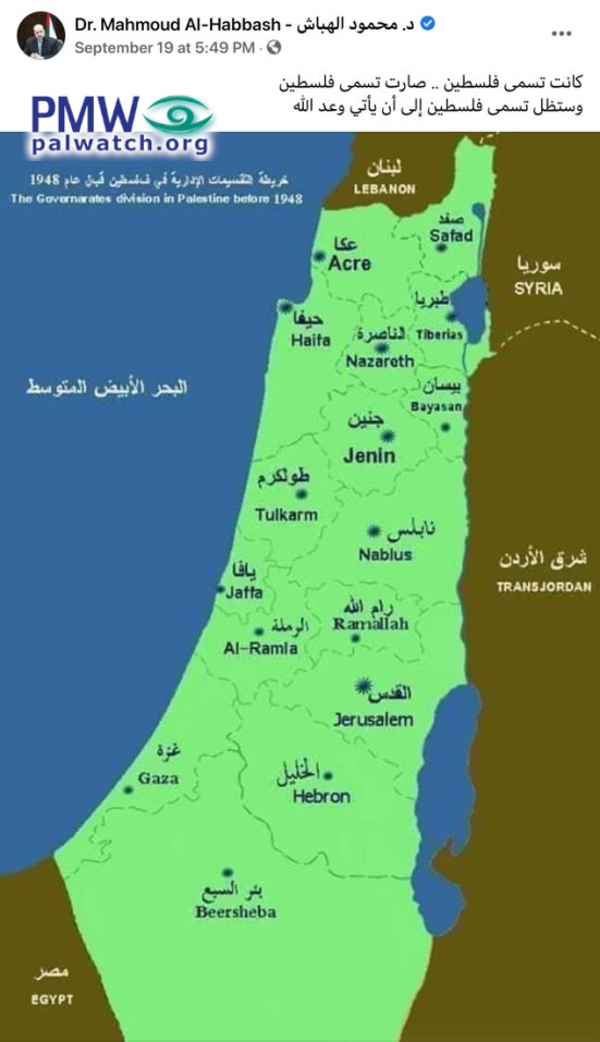 Image and text posted on the Facebook page of Abbas’ advisor, Supreme Shari’ah Judge and Chairman of the Supreme Council for Shari'ah Justice Mahmoud Al-Habbash